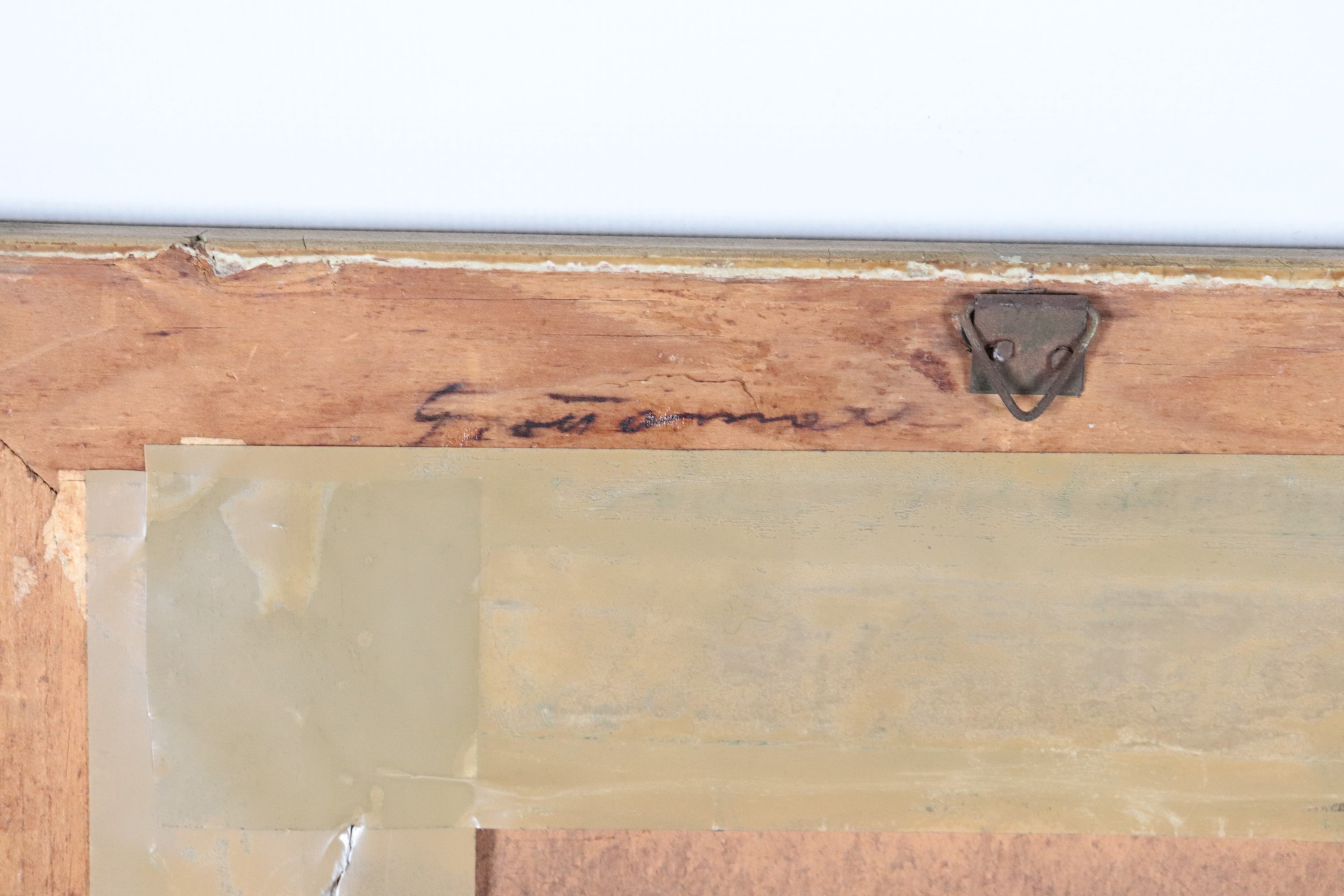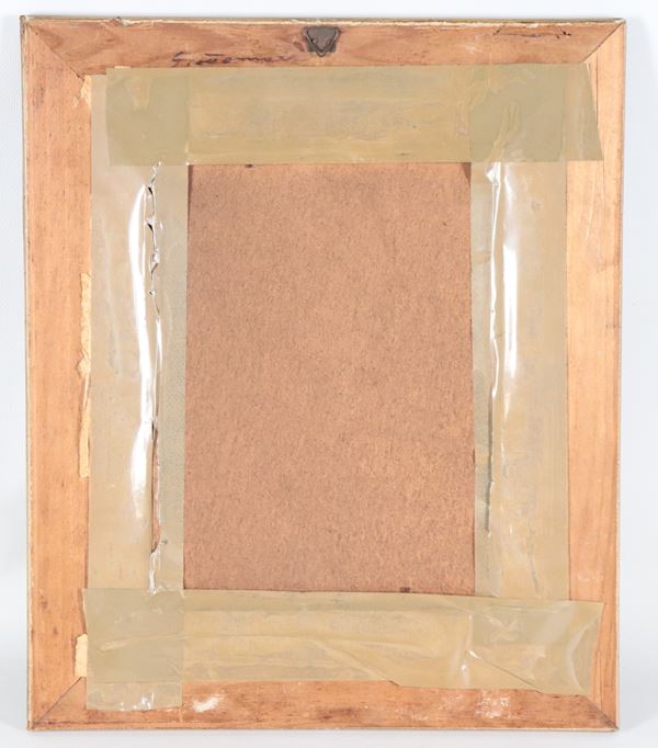 piccolo disegno a china e matita su cartacornice in legno dorato e intagliato, cm 24 x 18.