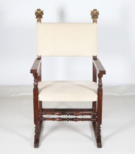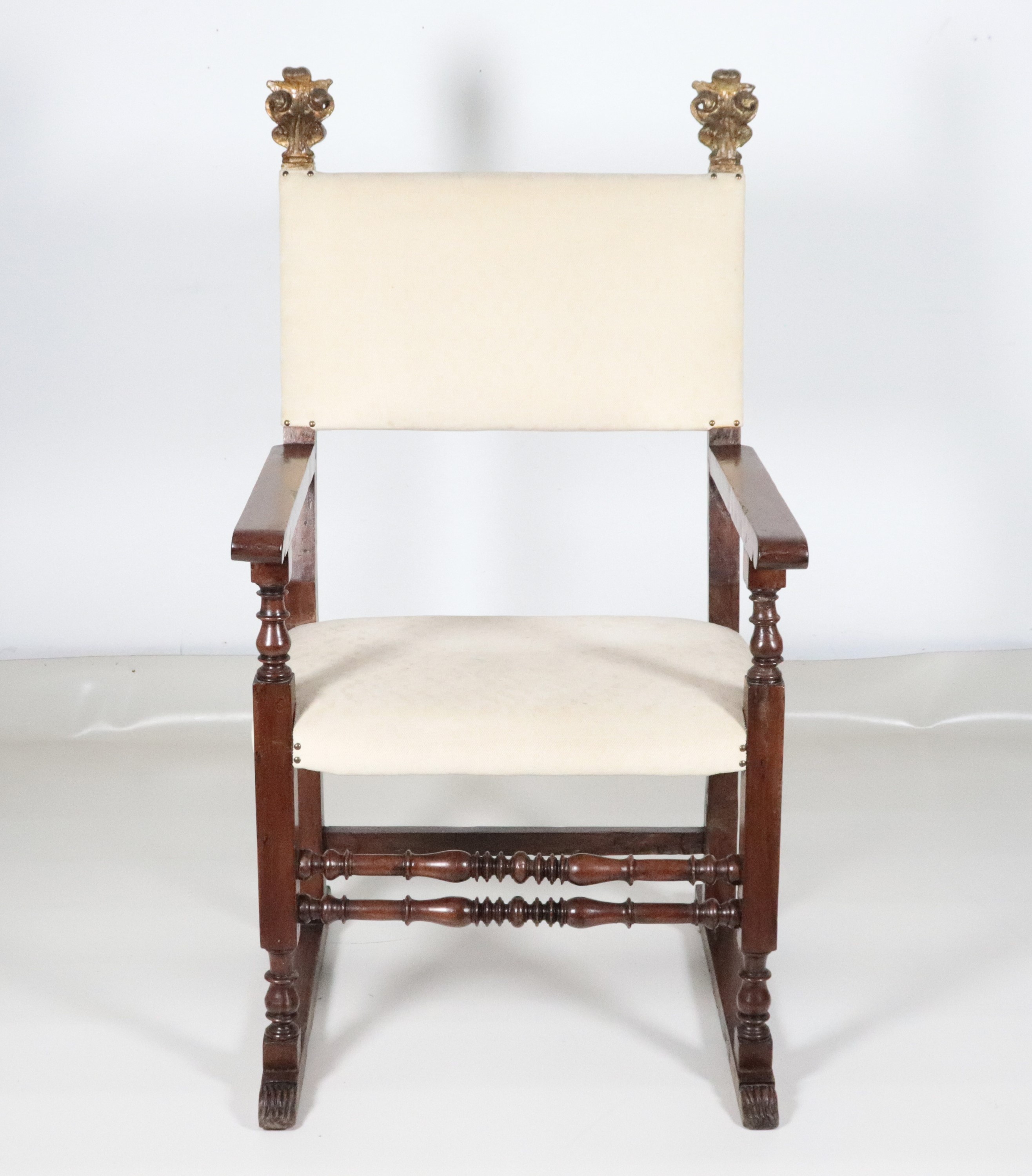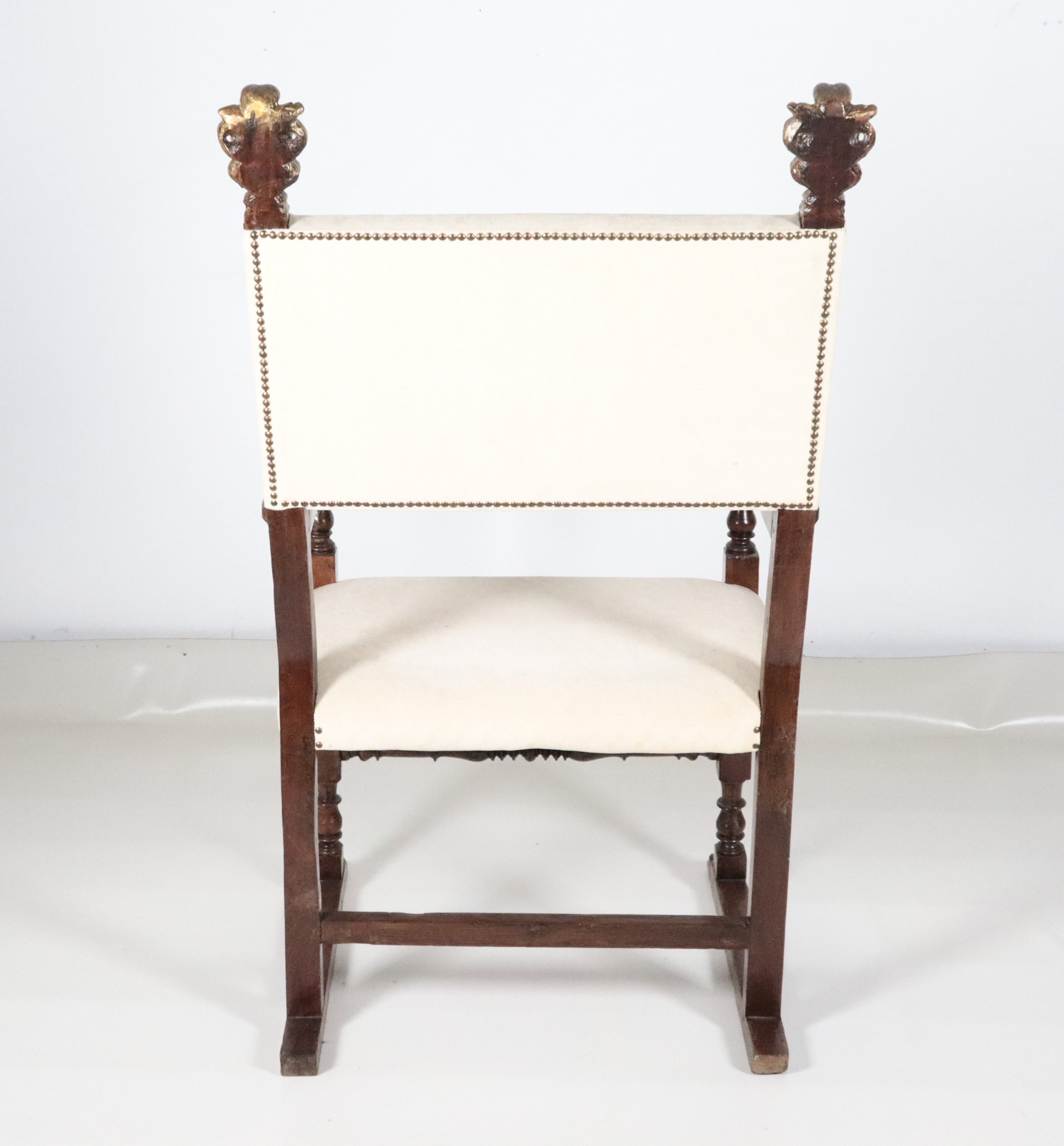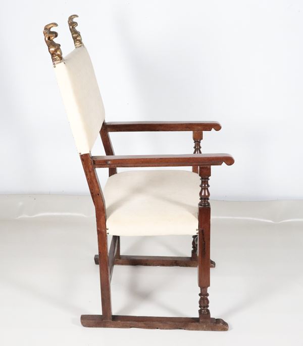 Antico poltroncione marchigiano in noce, con gambe tornite a rocchetto