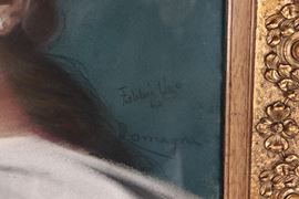 dipinto a pastello su cartaantica cornice in legno dorato e intagliato dell'epoca, cm 50 x 38.