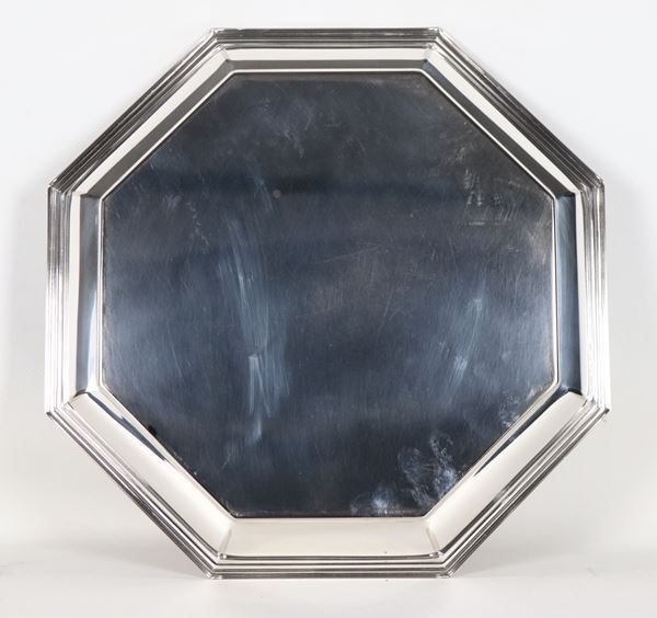 Piccolo vassoio ottagonale in metallo silver plate