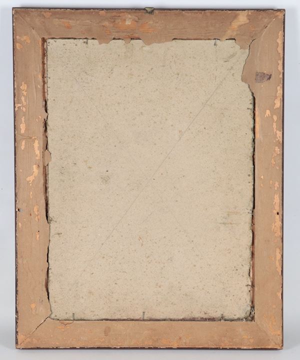 dipinto ad olio su cartone pressato antica cornice in legno dorato e intagliato dell'epoca, cm 50 x 38.