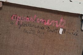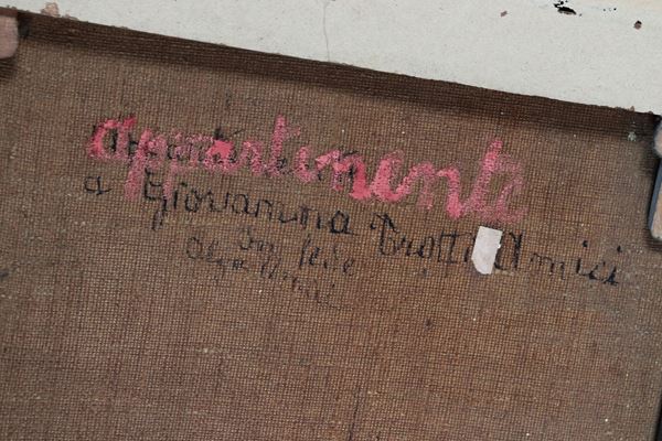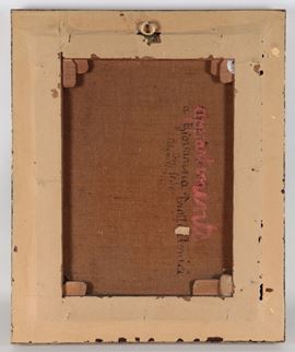 piccolo dipinto ad olio su telacornice in legno dorato, cm 40 x 32.