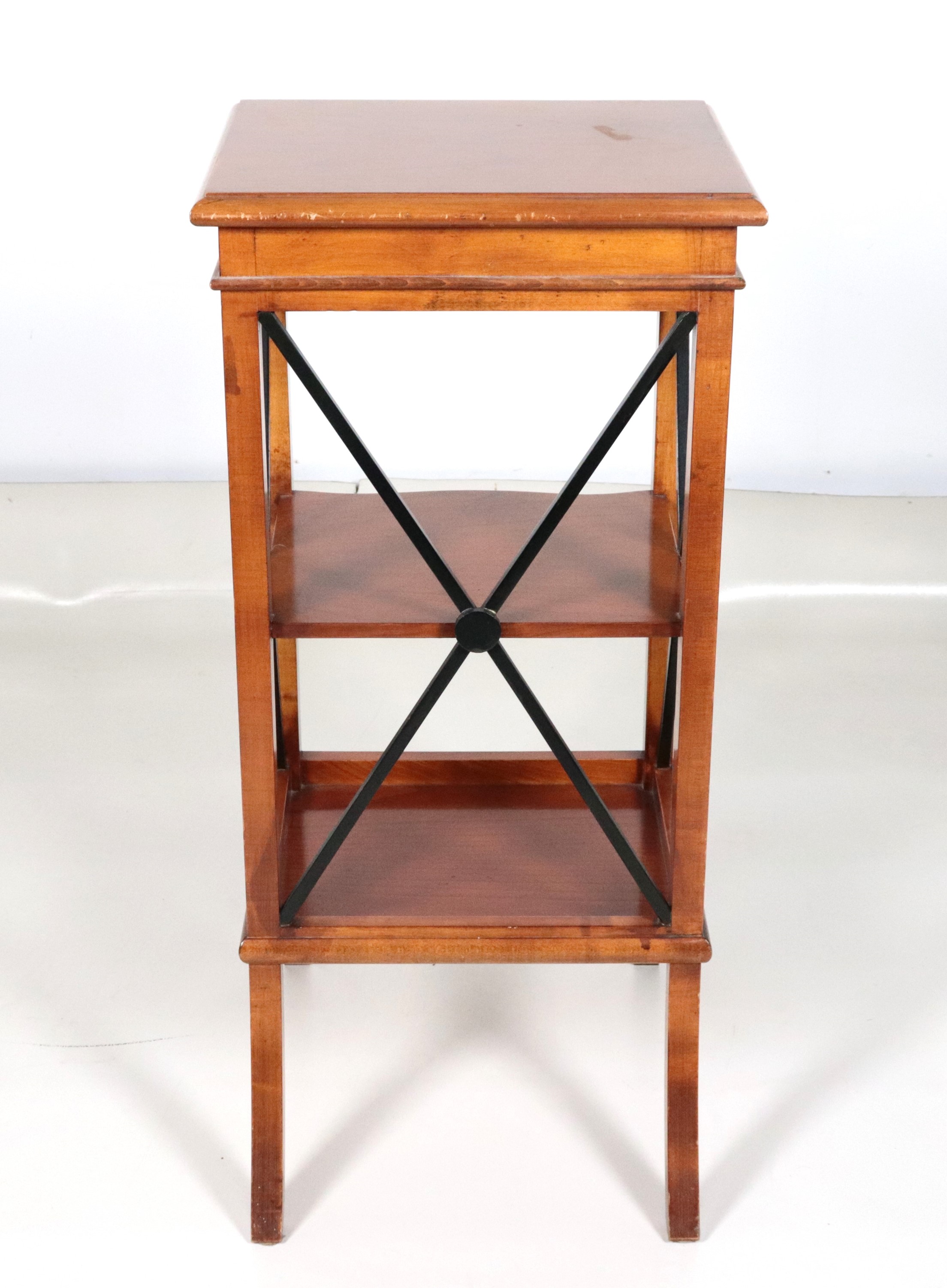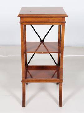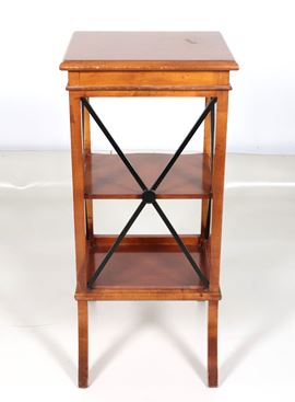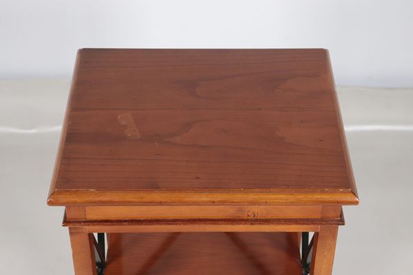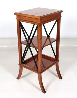 Tavolinetto quadrato in mogano biondo e legno ebanizzato con due ripiani