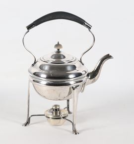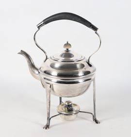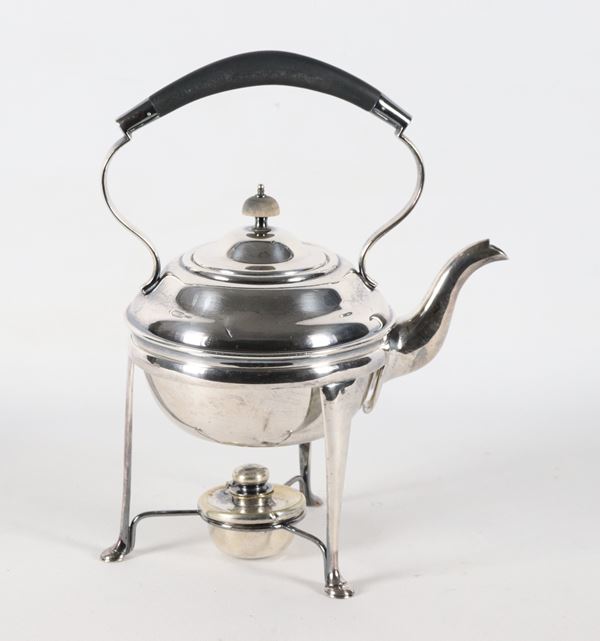 Teiera inglese in sheffield con spiritiera, manico ebanizzato