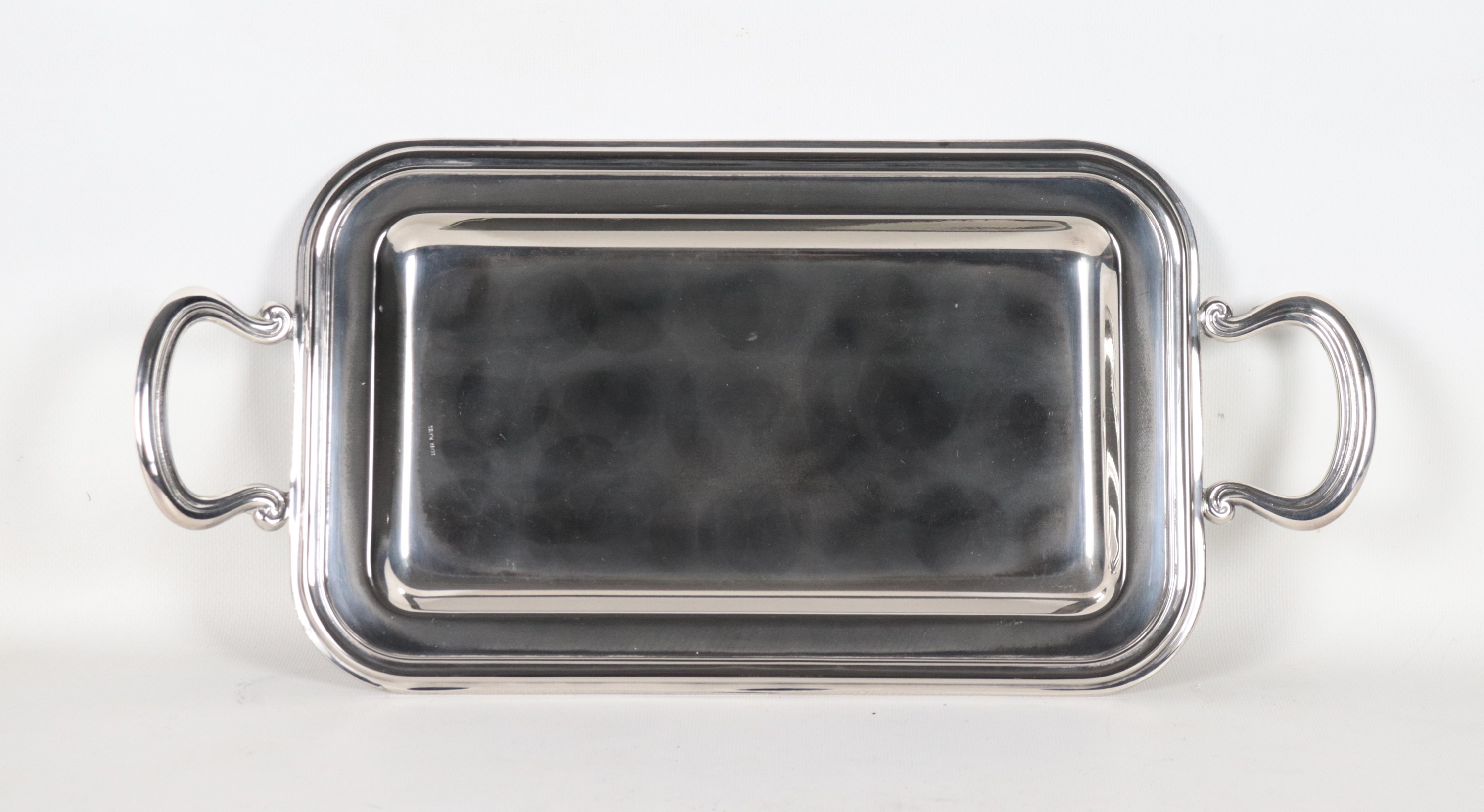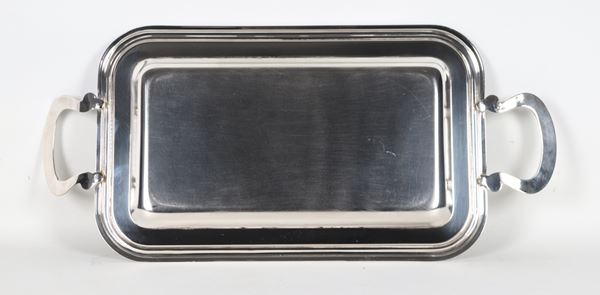 Vassoio rettangolare con due manici in metallo silver plate