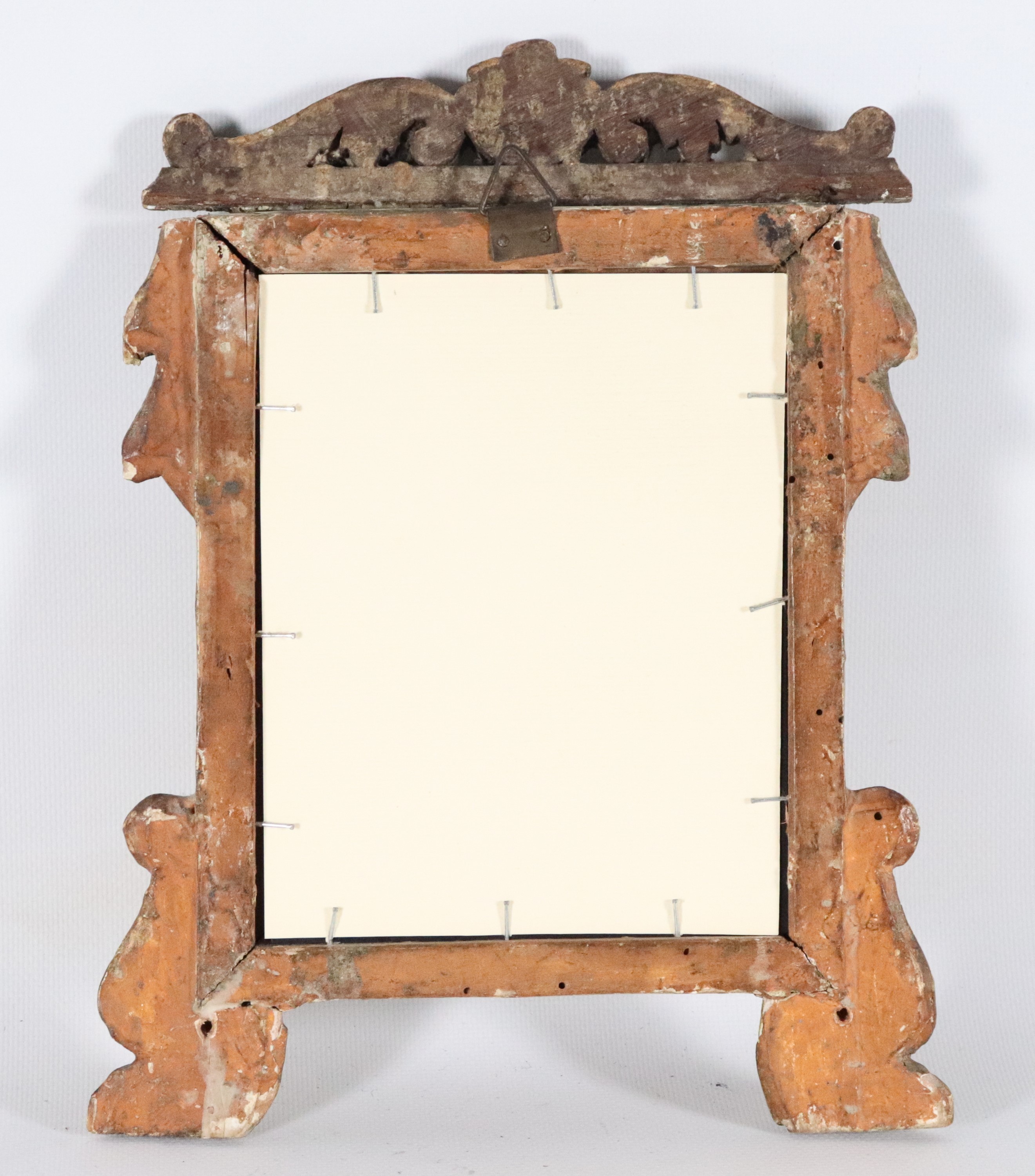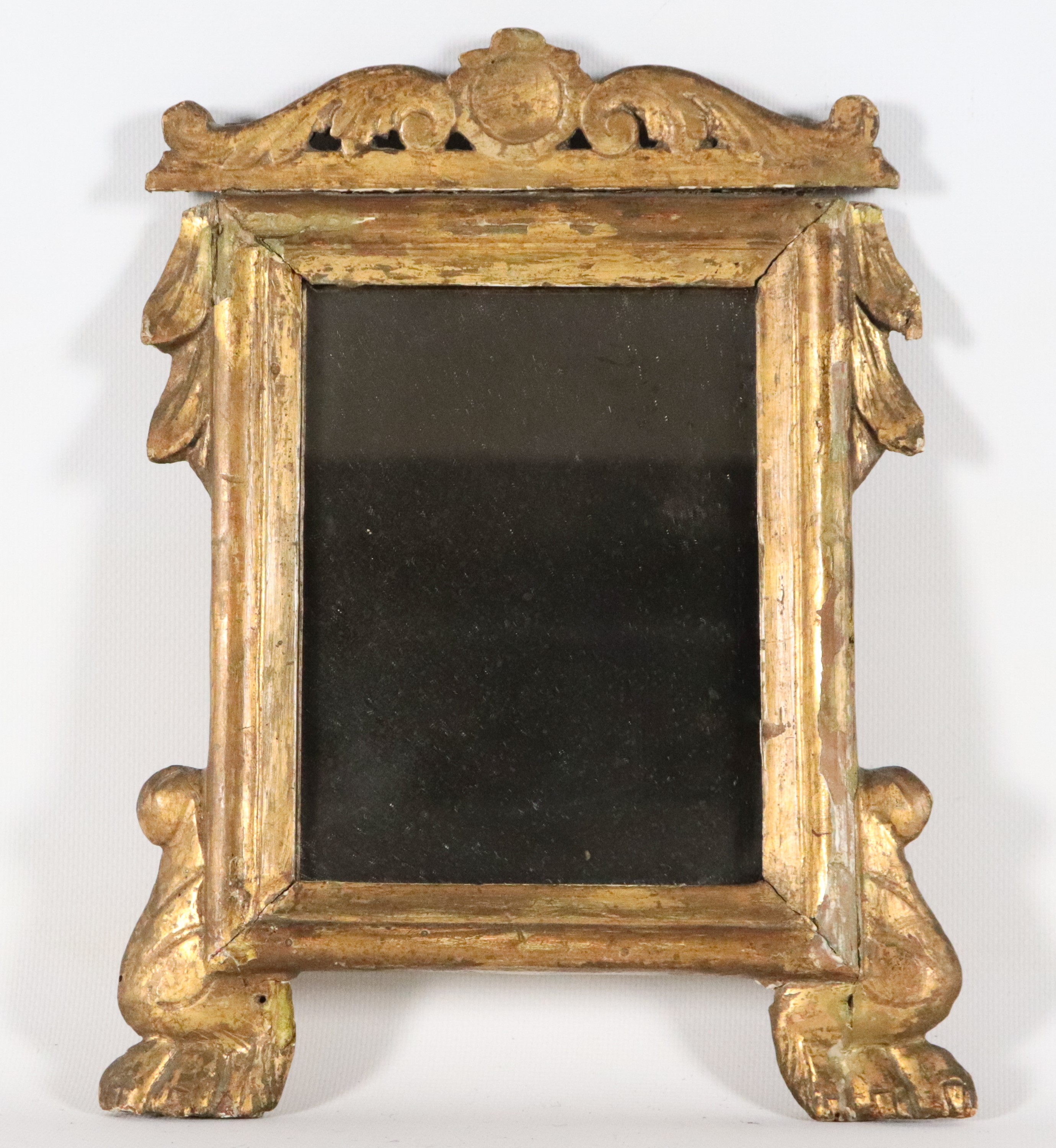 Antica specchierina romana in legno dorato e intagliato, specchio al mercurio