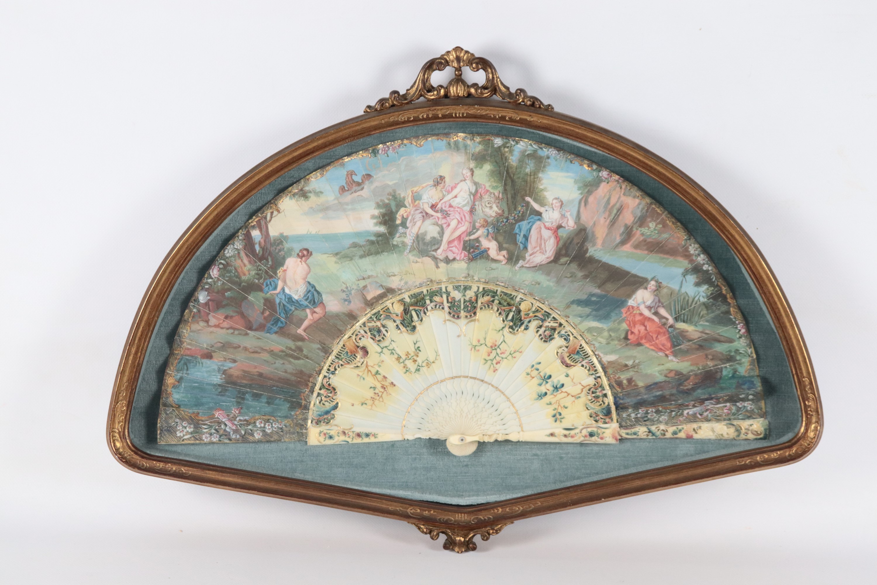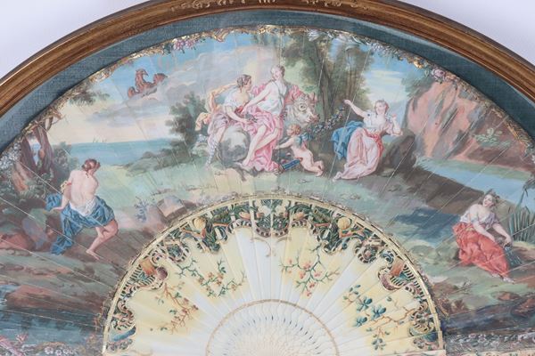 Antico ventaglio dipinto con allegorie mitologiche