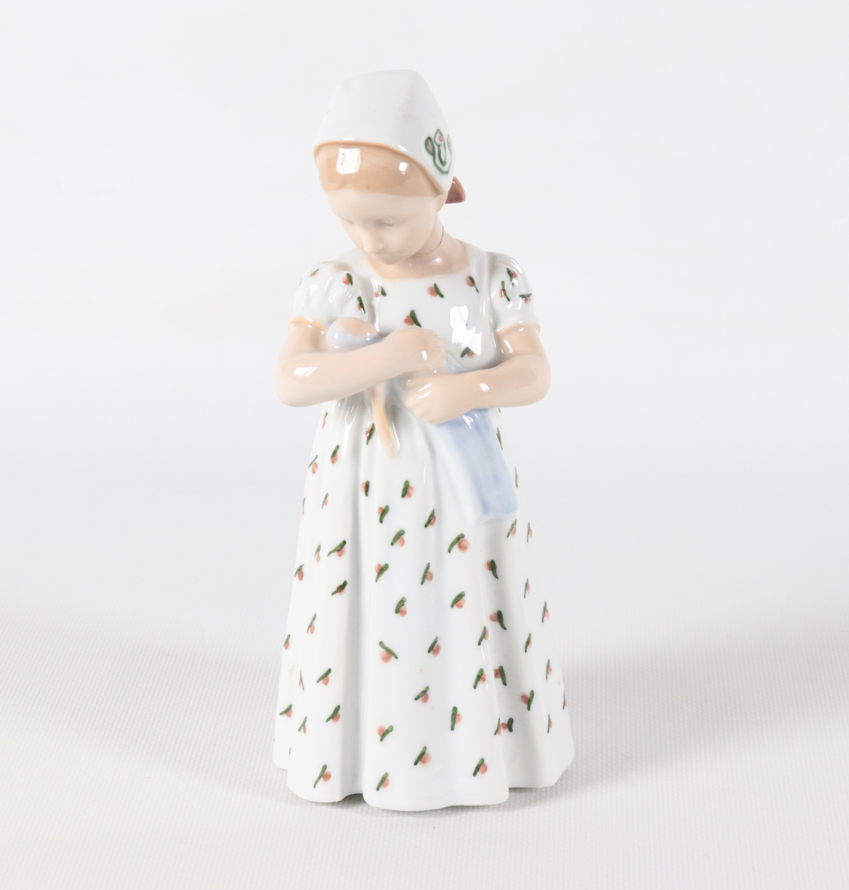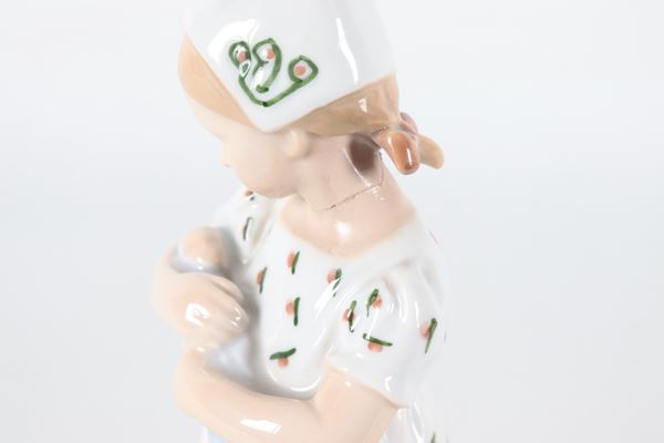 "Bambina con bambola", statuina in porcellana smaltata e policroma Copenhagen