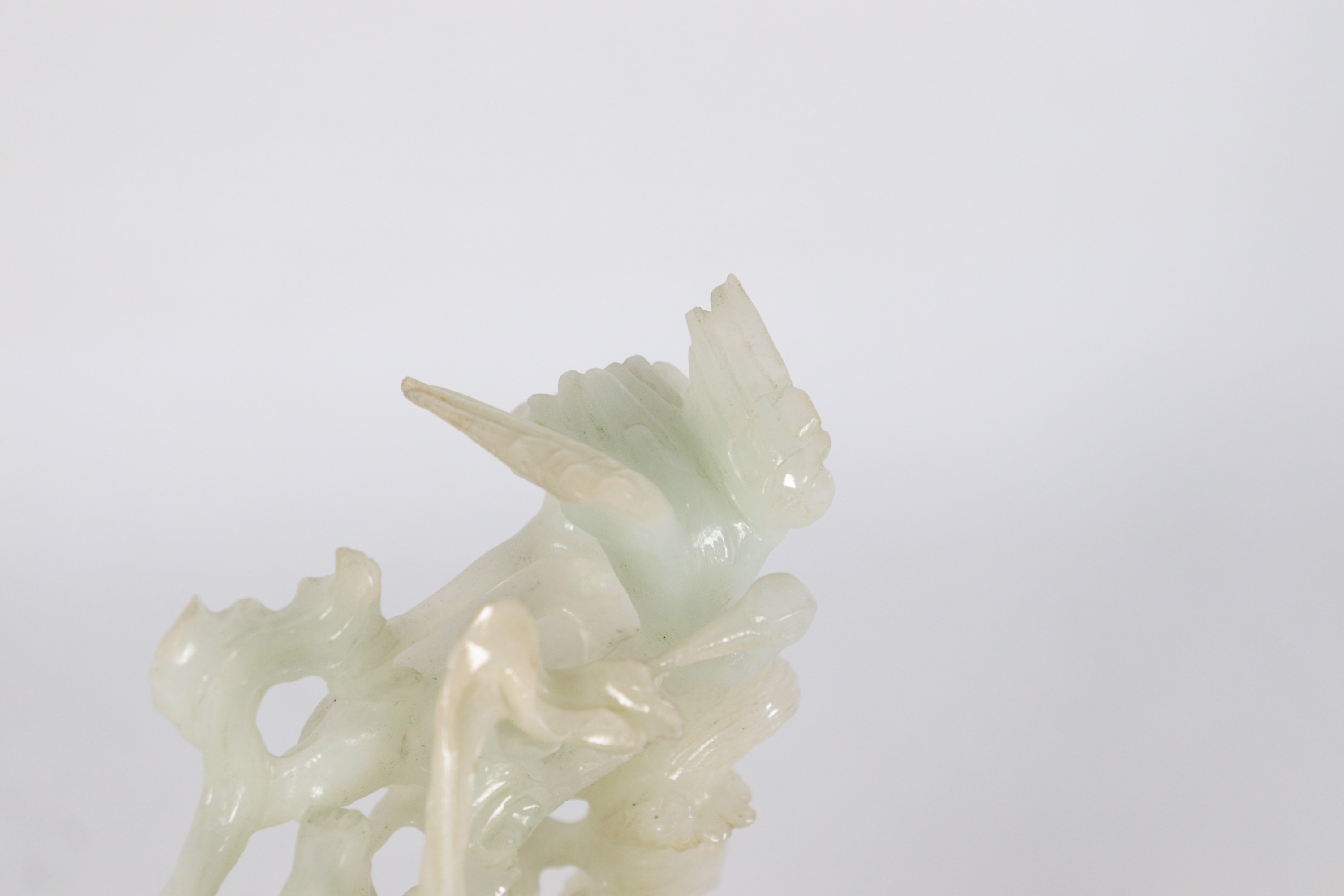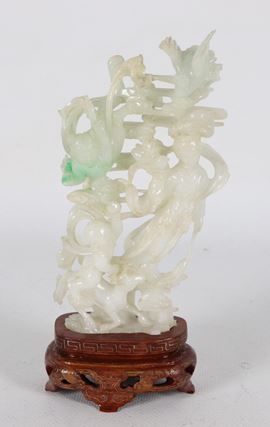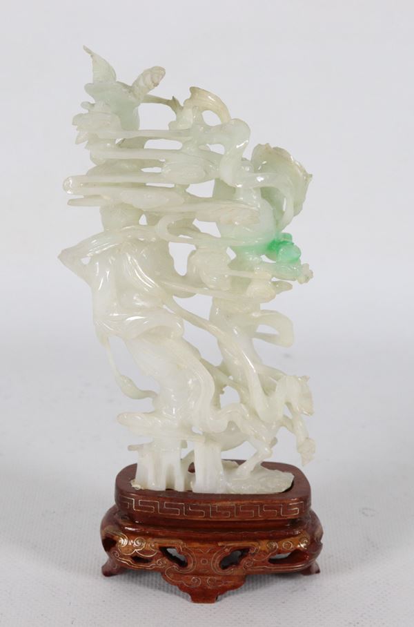 "Cortigiana con bambini e cerbiatto", gruppo cinese in giada con basetta in teak