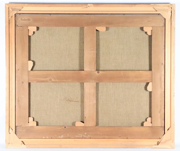 dipinto ad olio su telail dipinto è rintelato. Cornice in legno dorato e intagliato, cm 87 x 105.