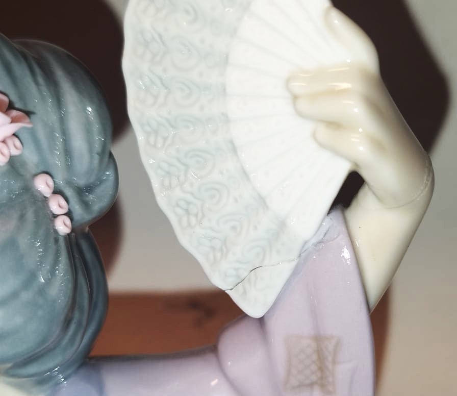 rotture incollate a un ventaglio e a una mano, misura massima cm 17 x 10 x 30 h ciascuna.