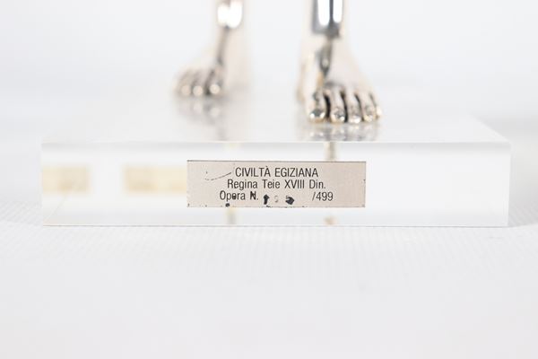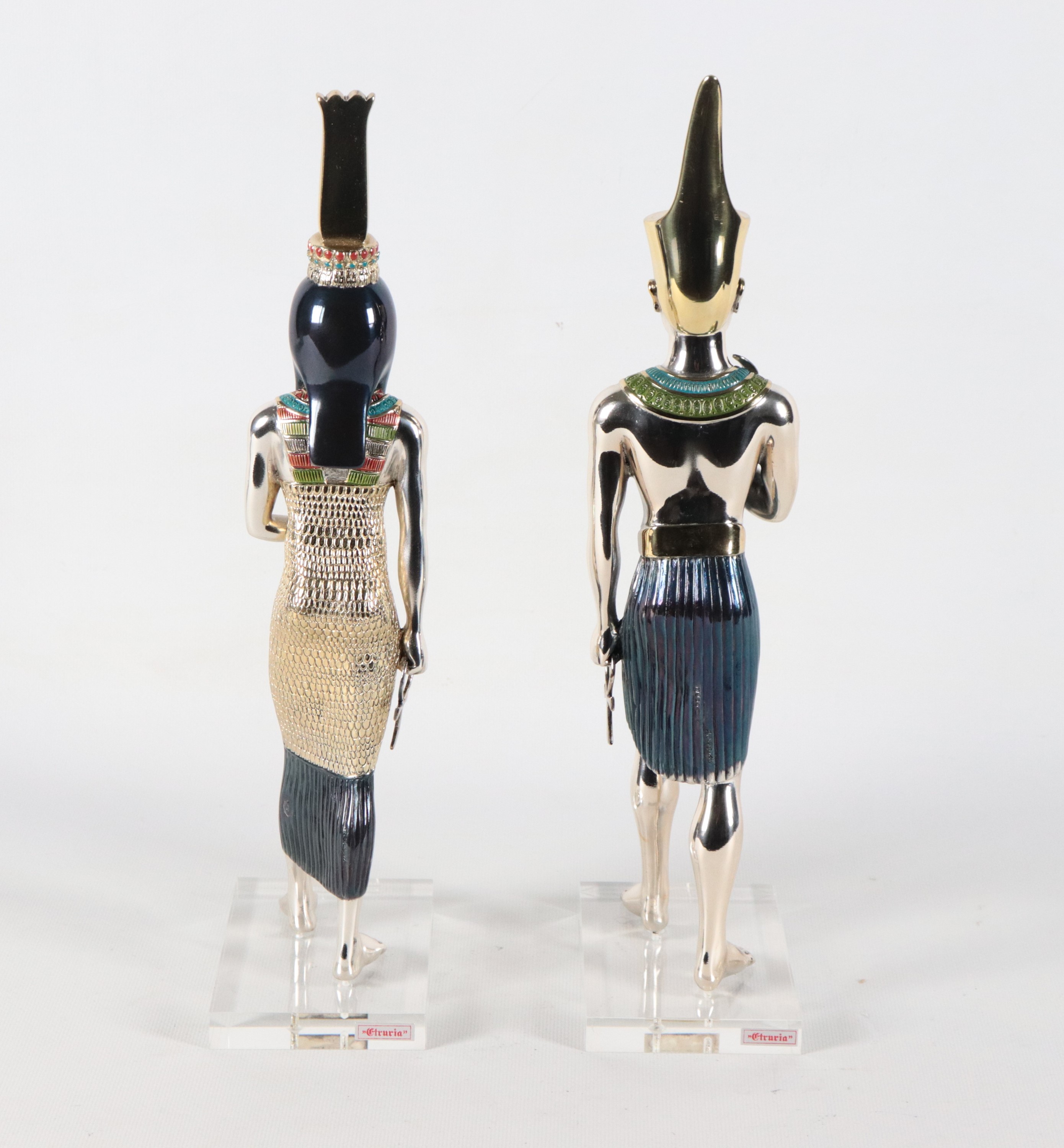 "Il Faraone Amenhotep III e la Regina Teie", coppia di sculture rivestite in argento titolo 925 e smalti policromi. Collezione "Civiltà Egizia" [..]