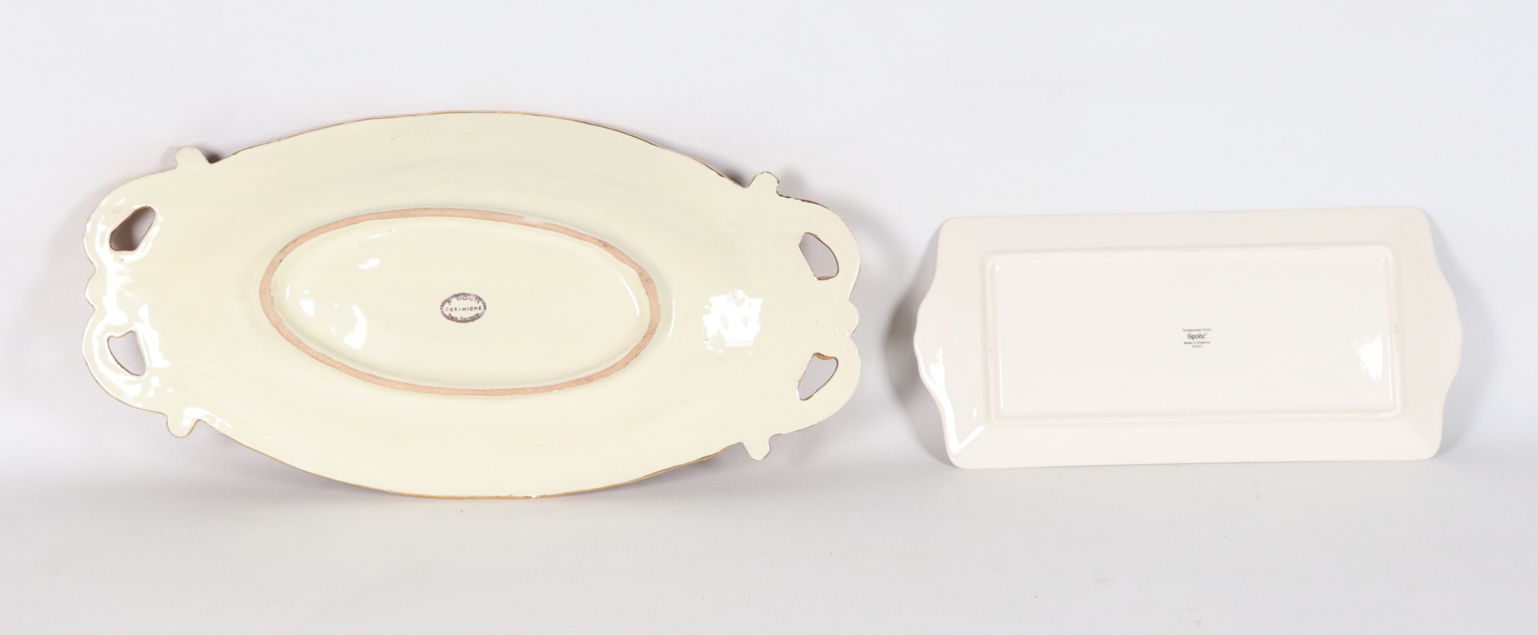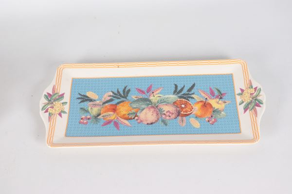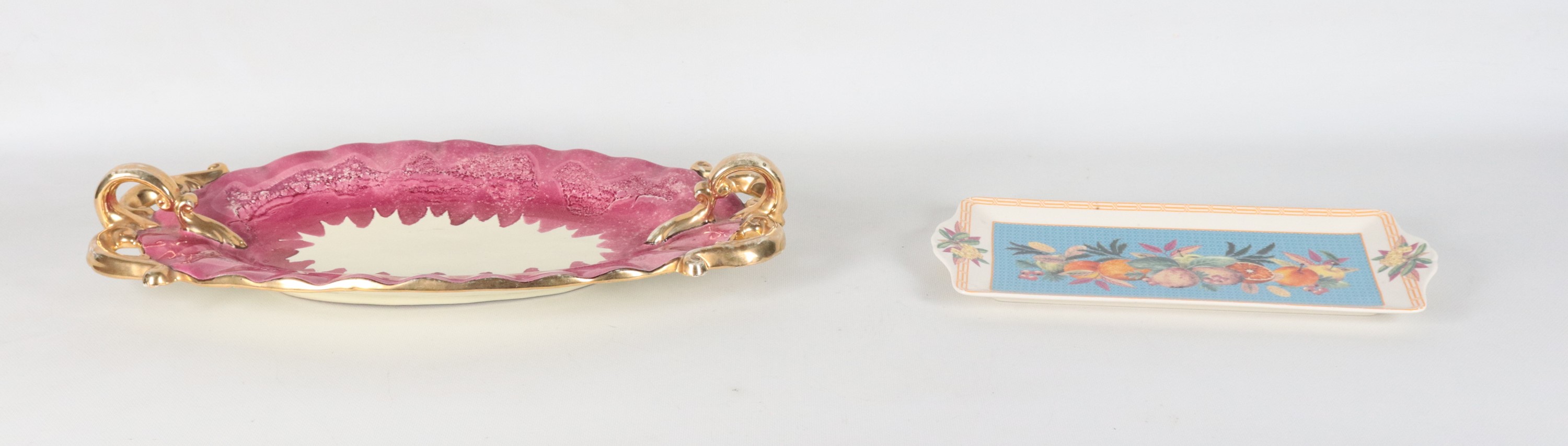 Lotto di due piccoli vassoi in porcellana e ceramica policroma