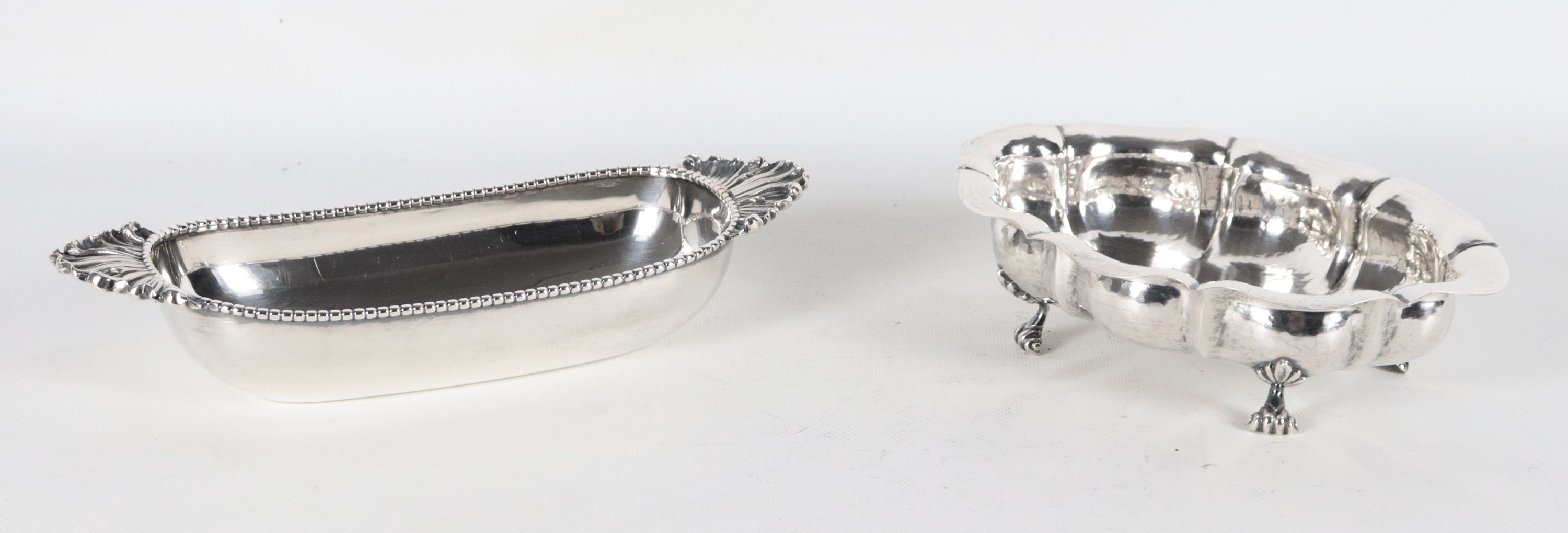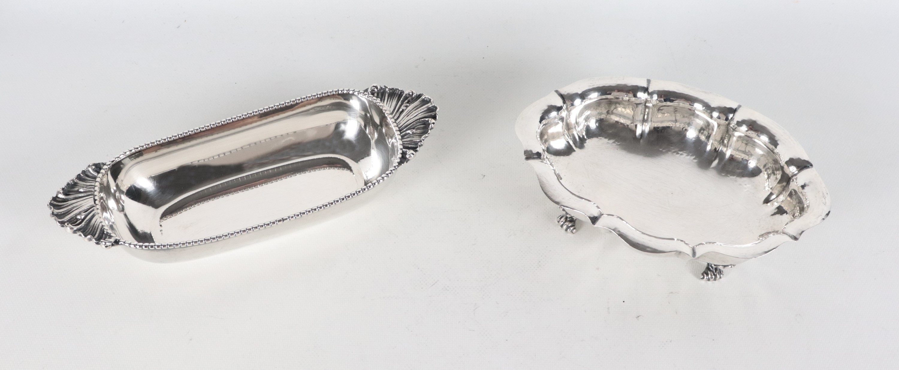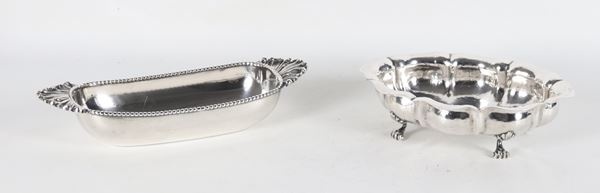 Lotto di due portabonbon in argento cesellato e sbalzato, gr. 515