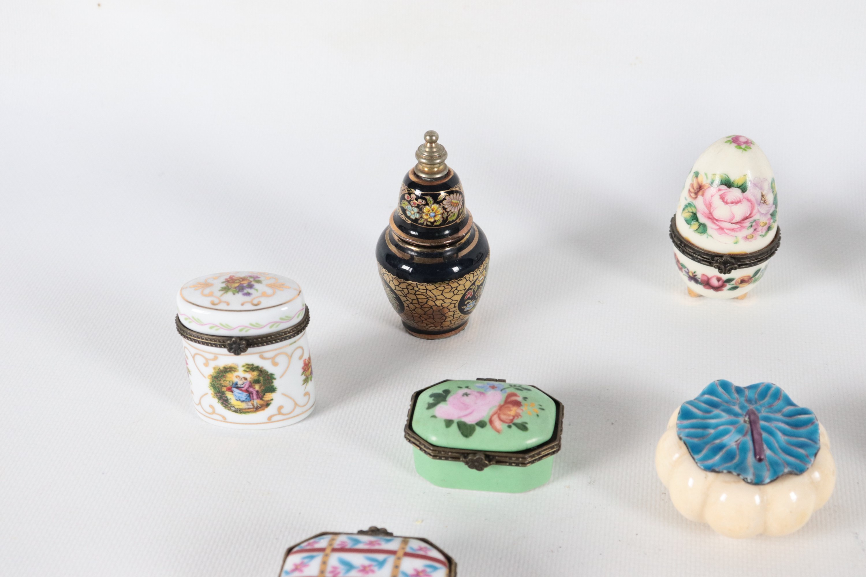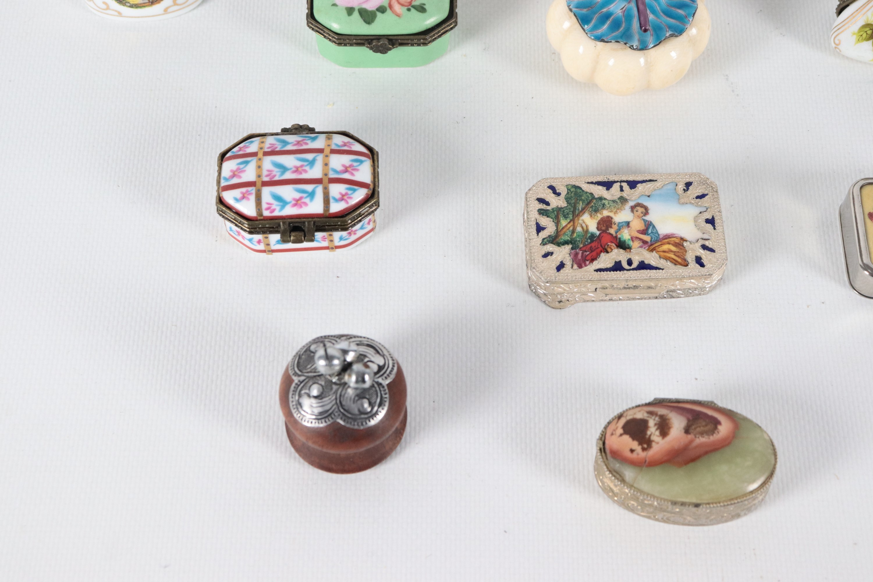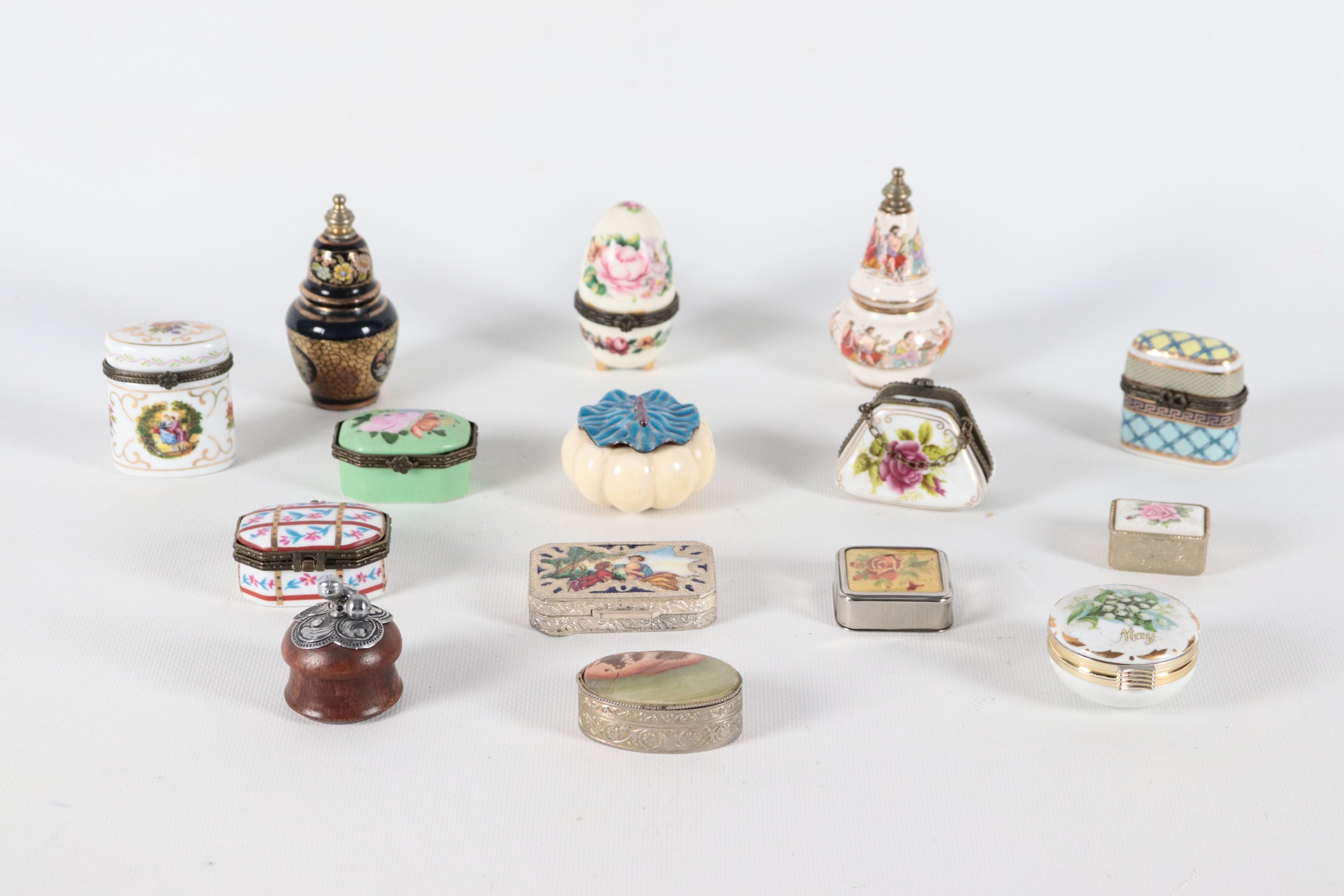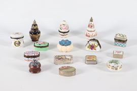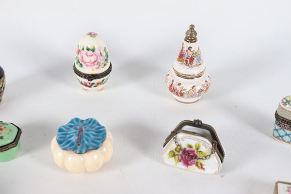 Lotto di quindici scatoline in porcellana policroma