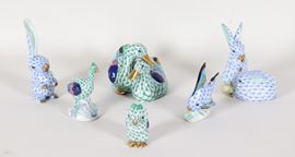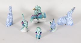 Lotto di sei animaletti in porcellana policroma Herend