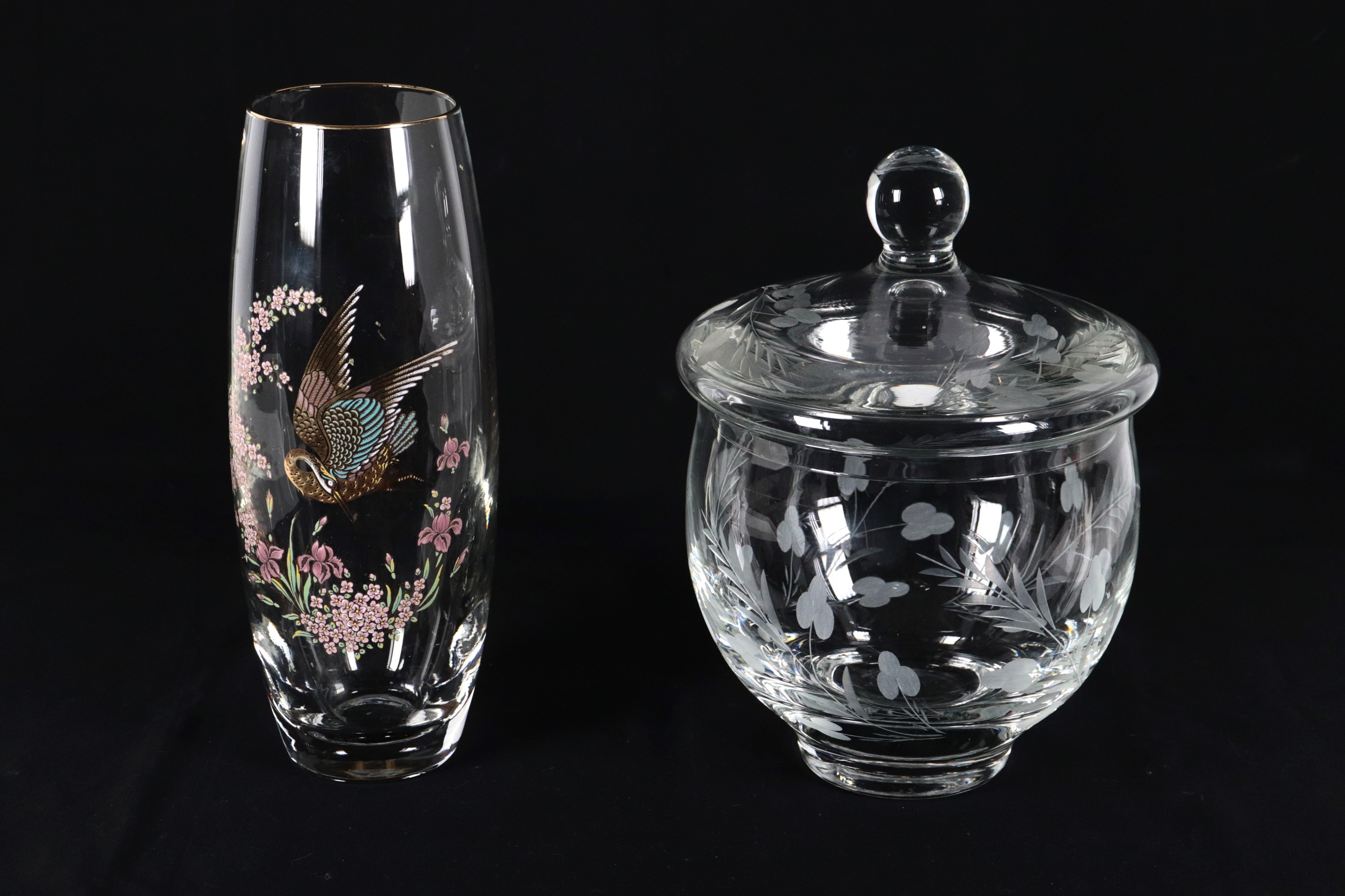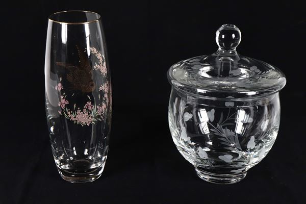 Lotto in cristallo lavorato di un vaso e un portabiscotti (2 pz.)