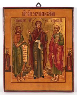 "Madre di Dio Gioia di tutti gli afflitti e i Santi Pietro e Paolo", antica icona dipinta su tavola
