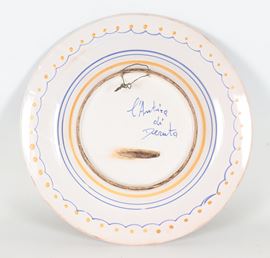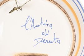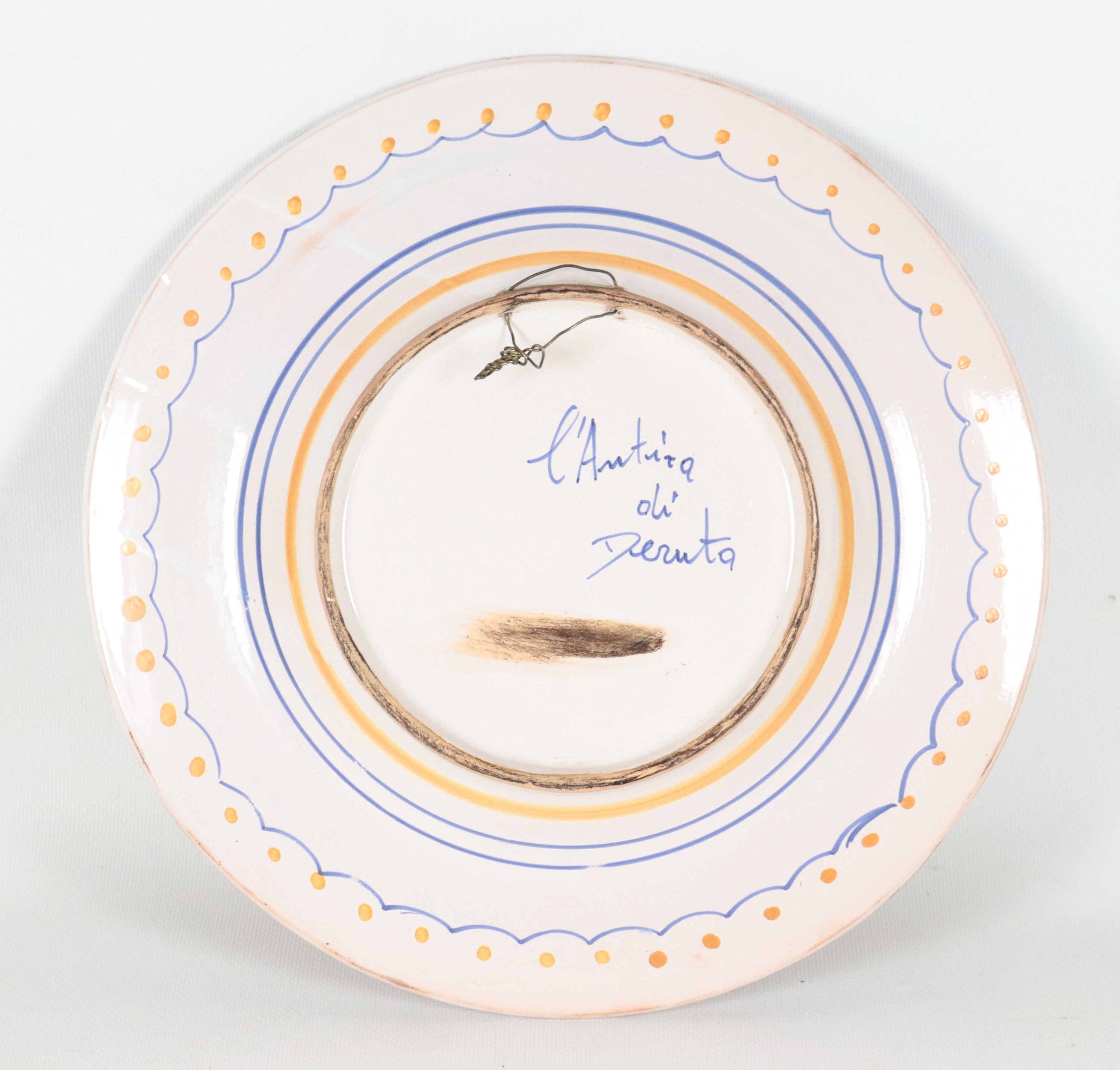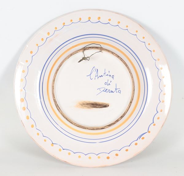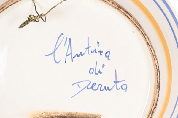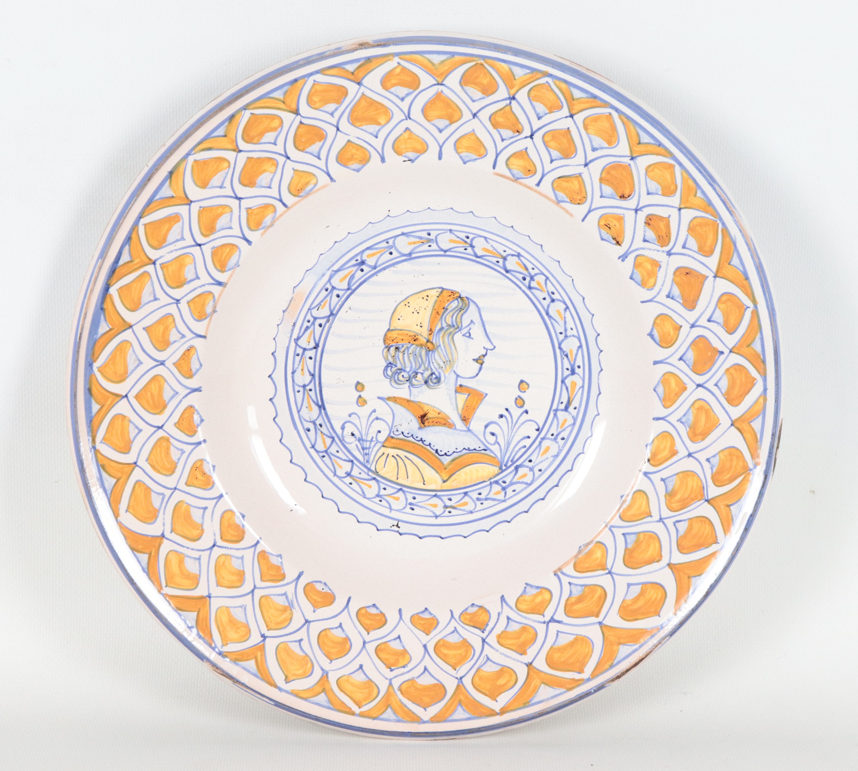 Piatto da muro in maiolica Deruta, al centro medaglione con profilo di dama seicentesca