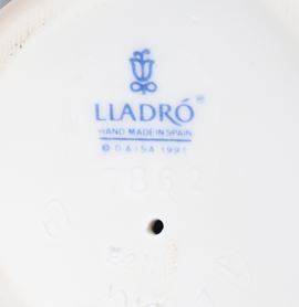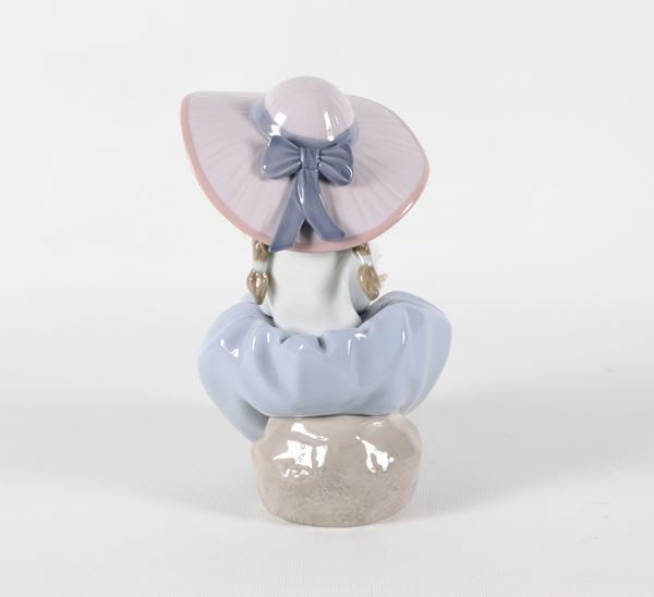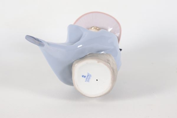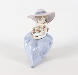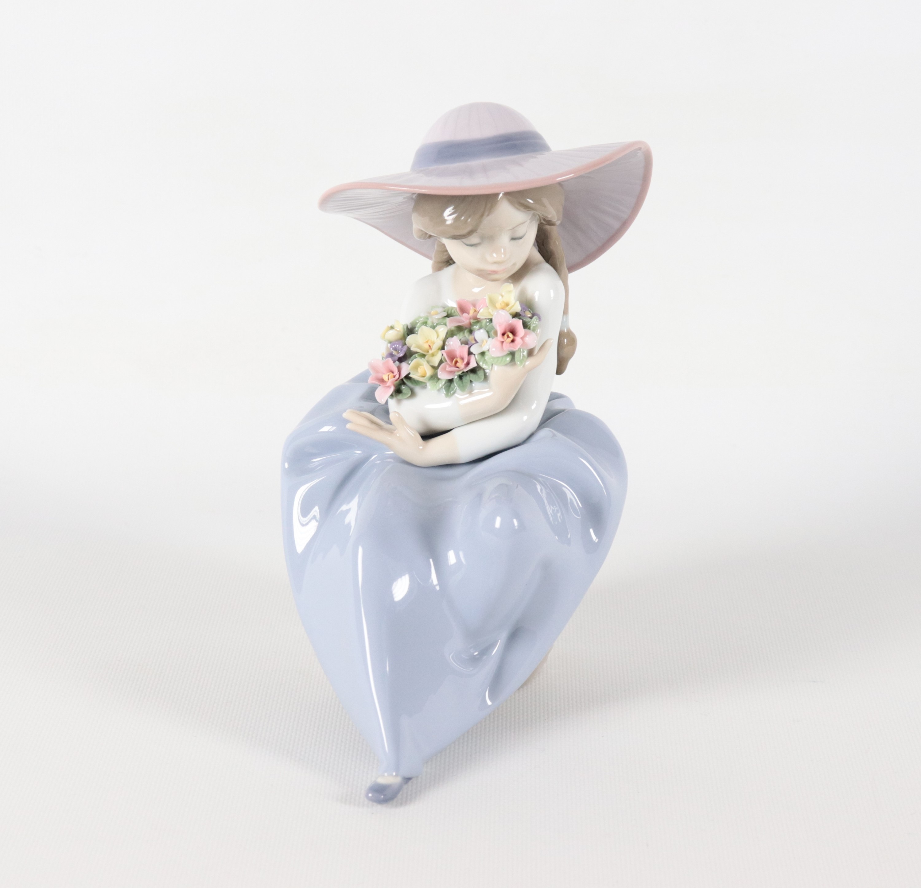"Ragazza con mazzo di fiori", statuina in porcellana spagnola smaltata e policroma