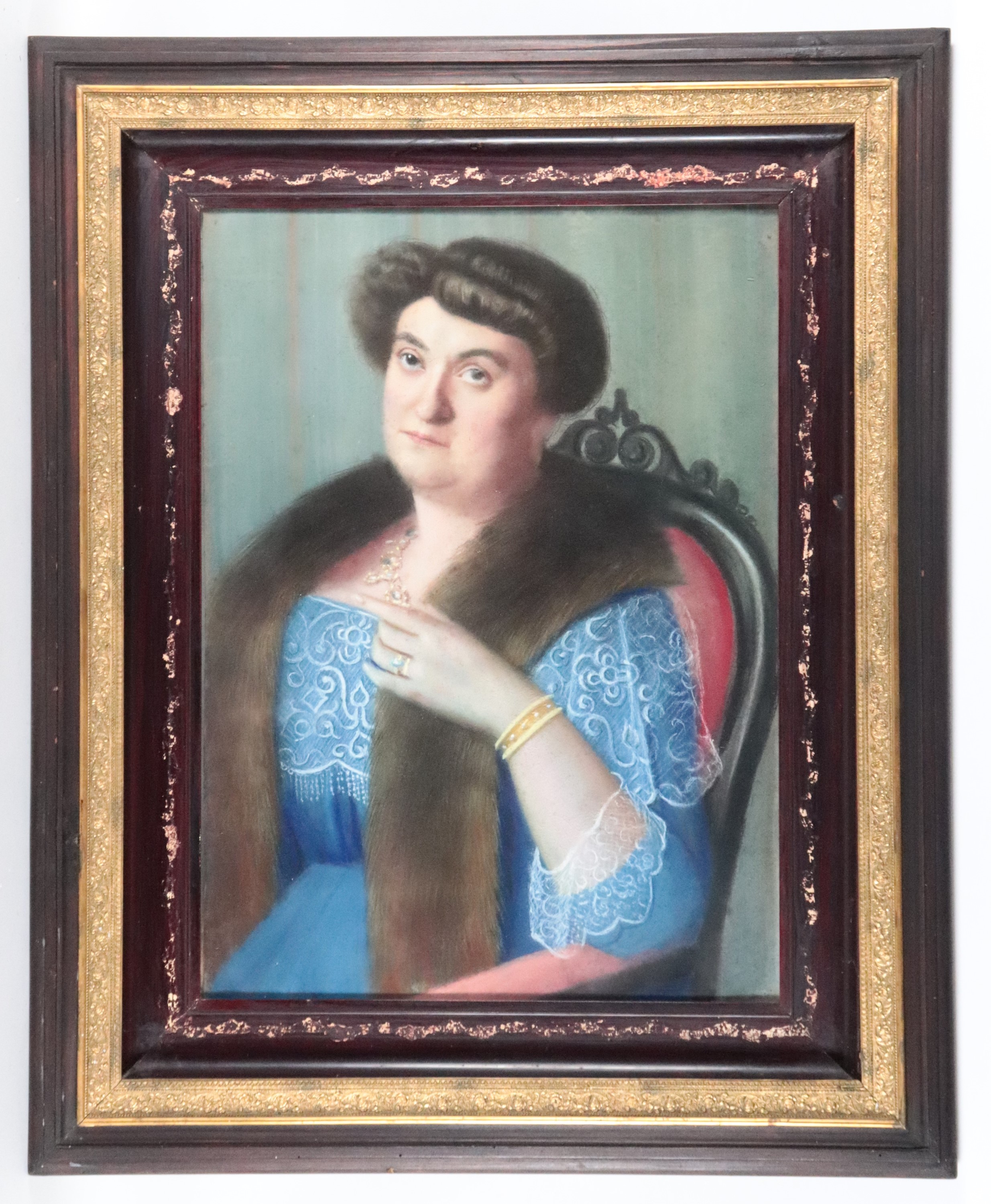 dipinto a pastello su cartacornice in legno ebanizzato e dorato, cm 70 x 50.