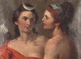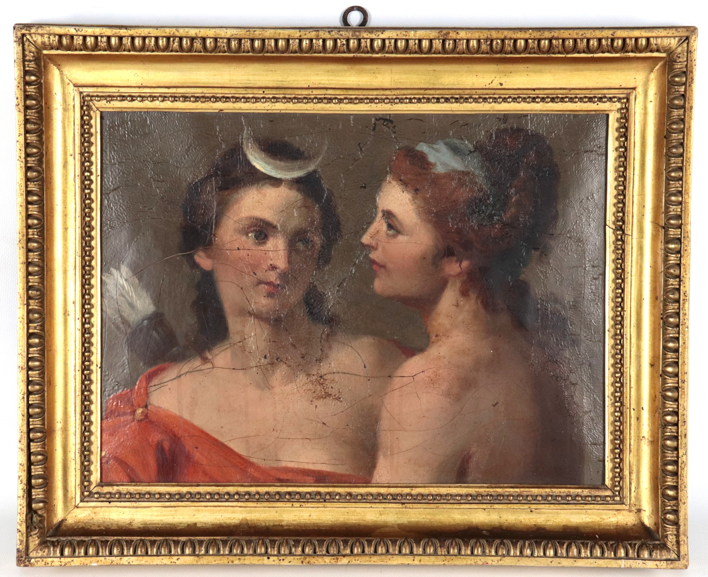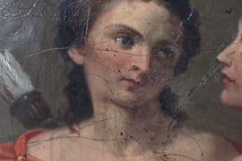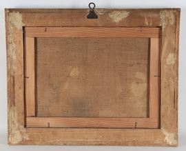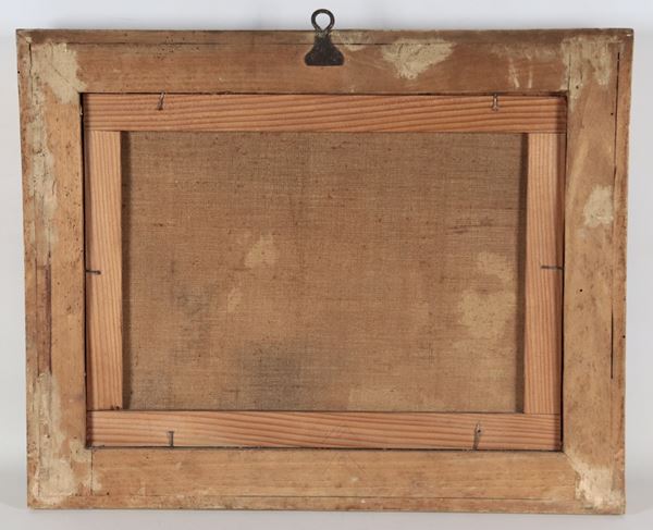 piccolo dipinto ad olio su telaantica cornice in legno dorato dell'epoca, cm 30 x 40.