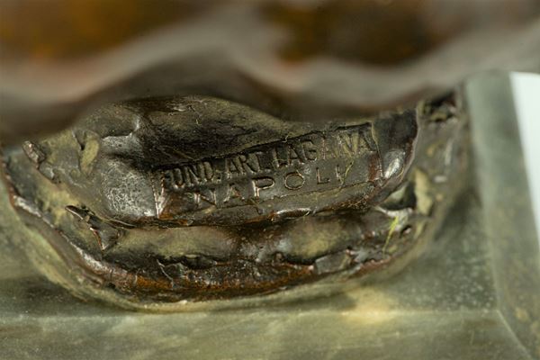 Firmato Fonderia Artigianale Laganà Napoli, base in marmo a forma di colonna quadrangolare. Altezza cm. 39.
