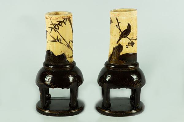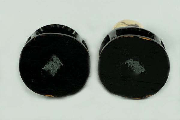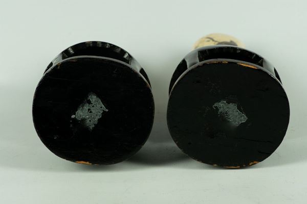 decorati a motivi di piante e volatili, basette in legno. Altezza cm.19.