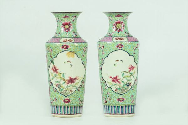 Coppia di Vasi in porcellana smaltata