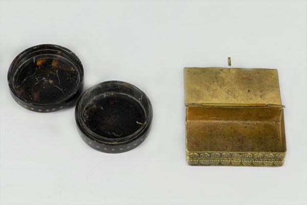Due piccole scatole in tartaruga e metallo dorato con pietre dure