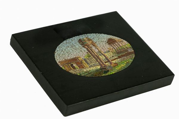 a forma rettangolare con al centro micromosaico "Il Foro Romano". Misura cm. 10,5 x 13.