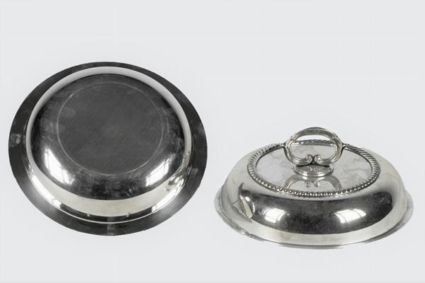 a forma tonda con bordi e profili baccellati. Diametro cm. 24,5 x 15,5 h.