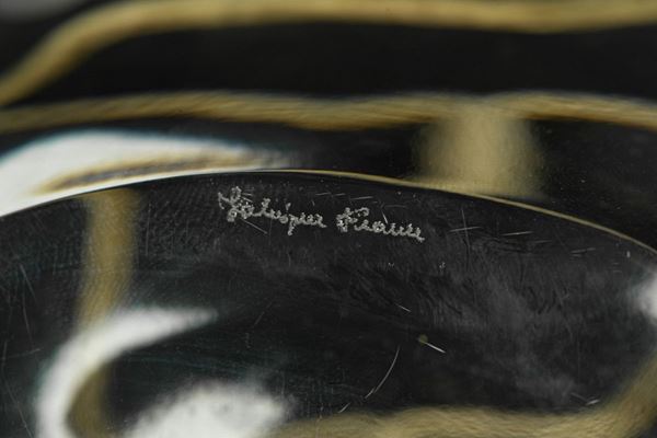 a forma ovale inciso a motivi di foglie. Misura cm. 20 x 15 x 11 h.