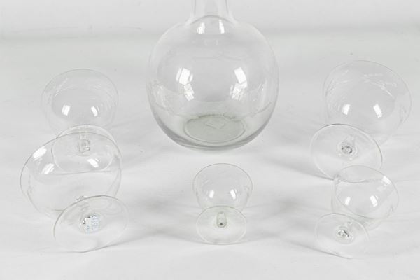 composto da: 11 bicchieri da acqua, 12 bicchieri da vino, 12 coppe da champagne, 11 bicchierini da liquore, 12 bicchierini da rosolio e 1 bottiglia per vino. Tot. 59 pz.