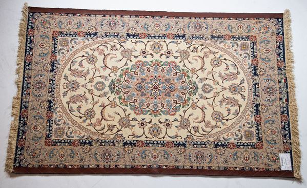 misto seta a motivi floreali su fondo beige e blu. Misura mt. 1,74 x 1,11.