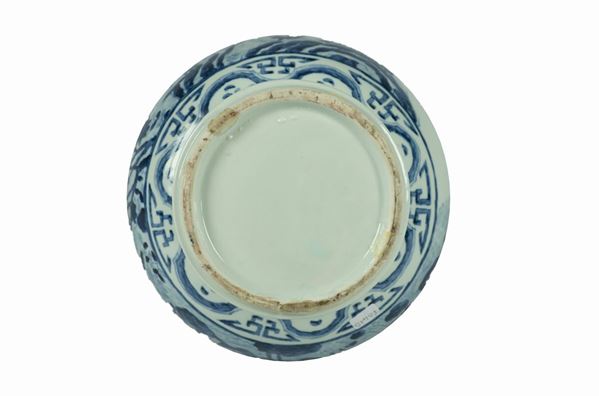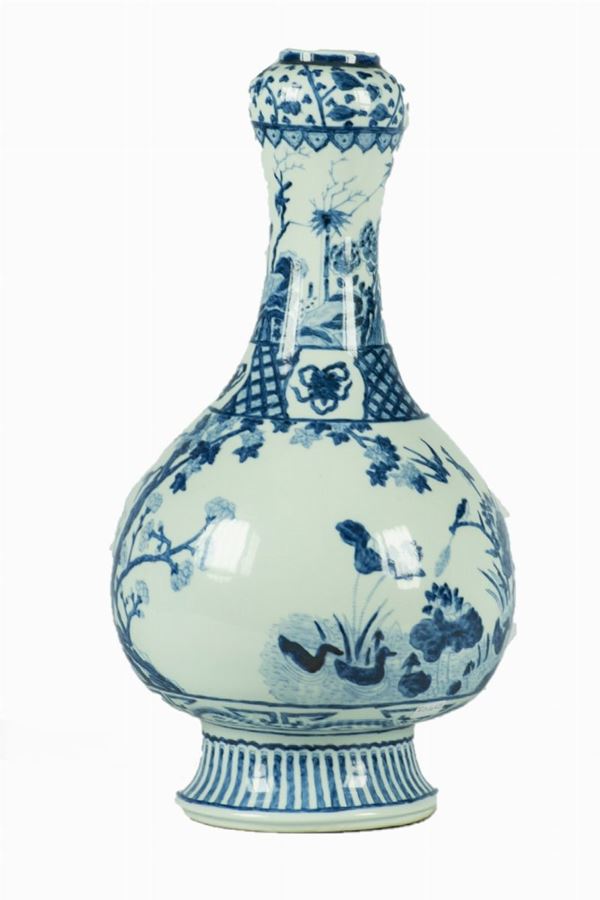 con decorazioni in blu a motivi di fiori e uccelli orientali su fondo bianco. Altezza cm. 43.