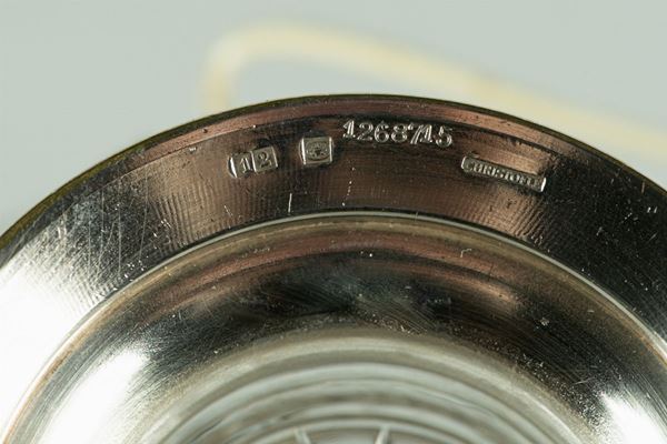 in cristallo e metallo argentato e sbalzato. Altezza cm. 15.