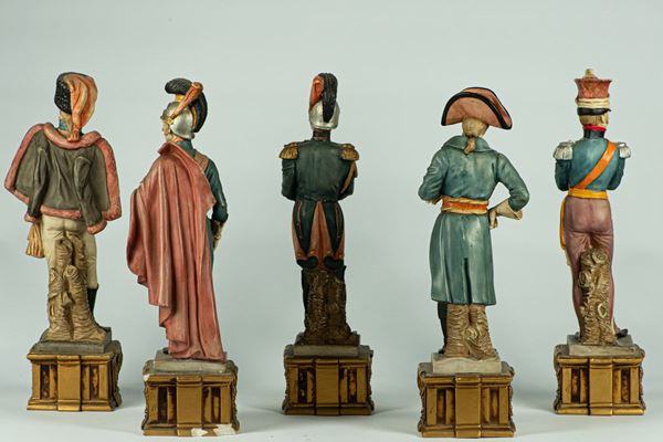 5 Sculture "Ufficiali Napoleonici" in ceramica Capodimonte