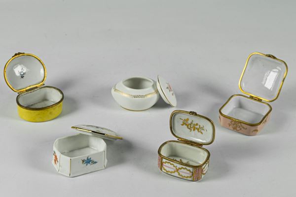 Cinque Scatoline in porcellana decorata