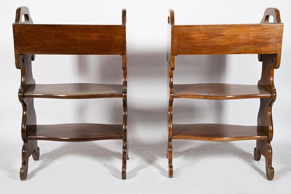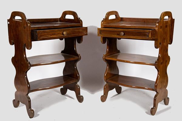 con tiretto centrale e due pianetti sottostanti a giorno. Misura cm. 49,5 x 34 x 81 h. ciascuno.