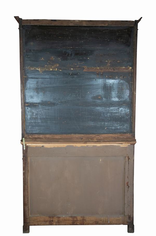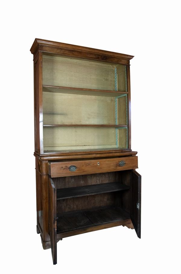 la parte superiore a giorno e la parte inferiore con tiretto centrale e due sportelli sottostanti. Misura cm.117 x 45 x 217 h.