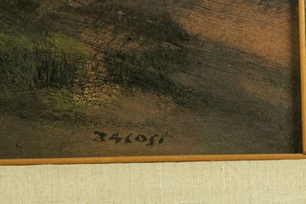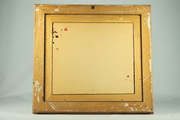 dipinto ad olio in cornice laccata verde e dorata. Misura cm. 40 x 45.