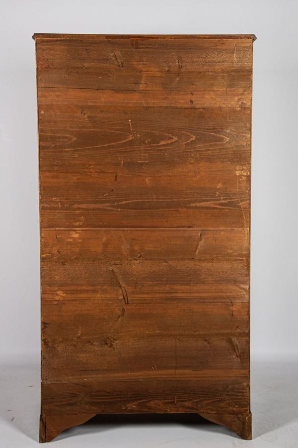 con intarsi a filettature in bosso, sette tiretti. Misura cm. 79 x 41 x 147 h.