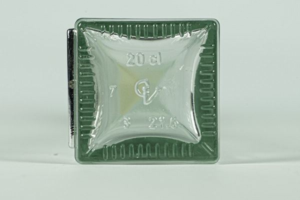 in vetro con applicazioni in metallo argentato e sbalzato. Misura cm. 5 x 36 h.