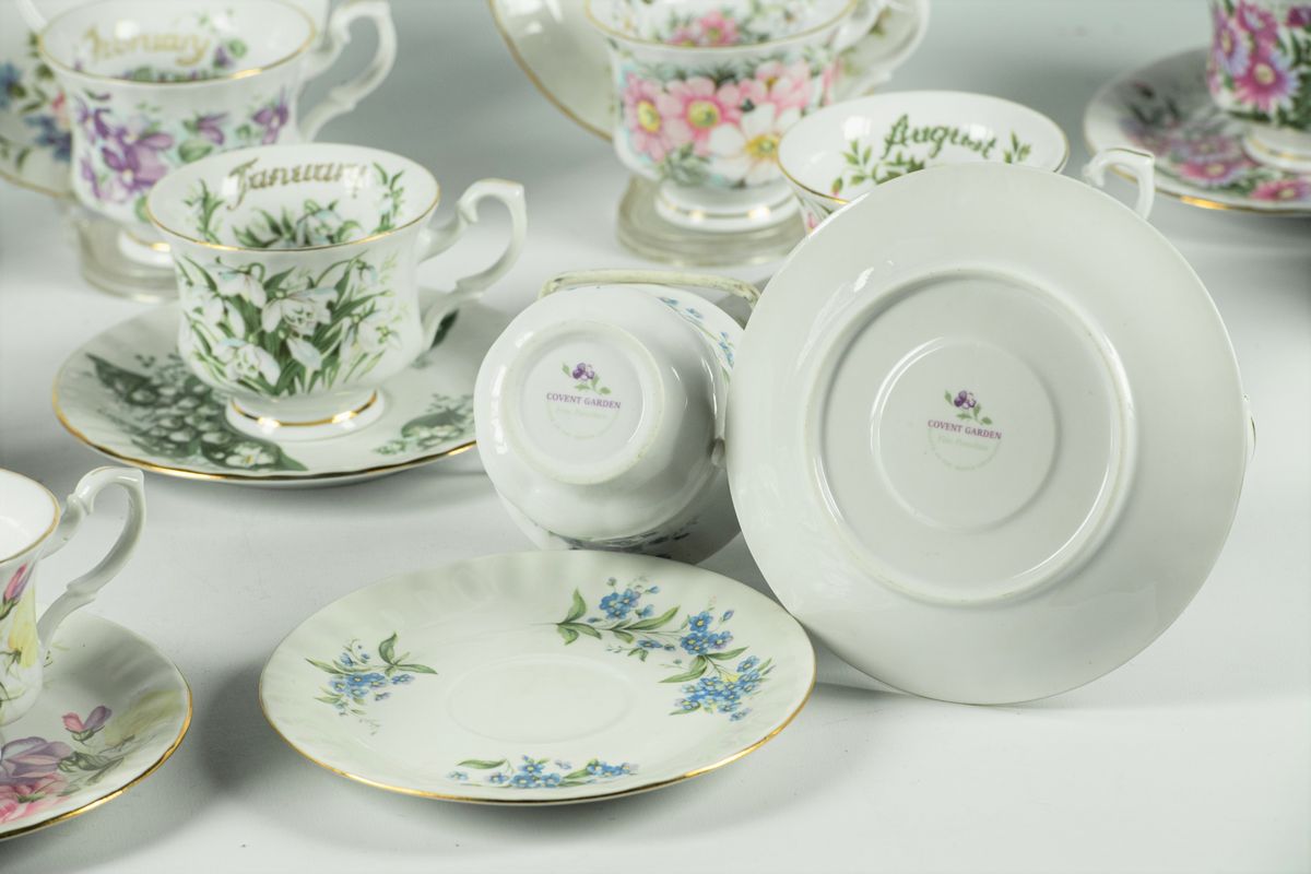 Collezione di Dodici Tazze da tè Inglesi con piattini in porcellana