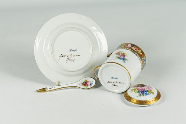 Cremiera con piattino e cucchiaino in porcellana Francese Limoges