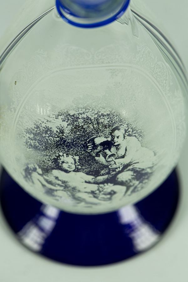 con decorazioni mitologiche e piccolo mascherone "Bacco", mancante dei tappi. Misura cm. 12 x 8 x 21 h.