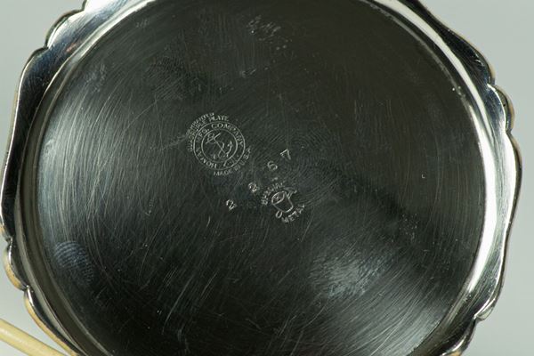 sbalzato e cesellato a motivi di grappoli d'uva. Misura cm. 13 x 12 h.