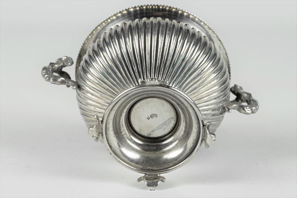cesellata e sbalzata a motivi Impero. Peso gr. 170. Misura cm. 13 x 9 x 11 h.
