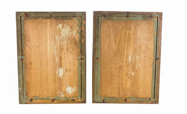 a forma ovale in cornici dell'epoca in legno dorato e vetro. Misura cm. 52 x 38 ciascuna.